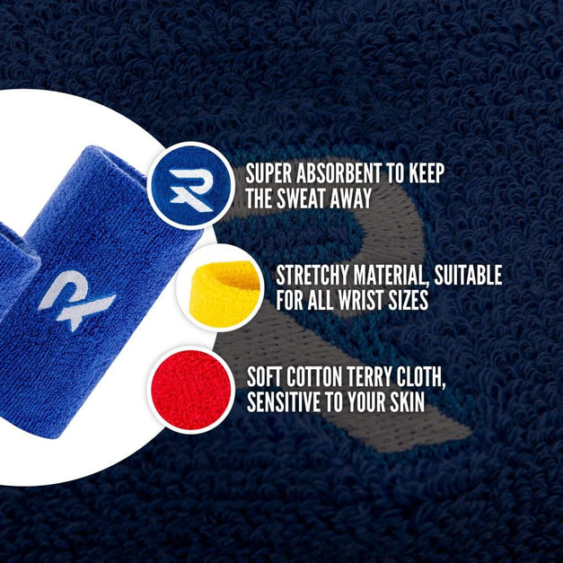 These wristbands complement the headbands perfectly. The soft cotton material prevents irritation, while the usual Raquex snug fit ensures no movement when being worn.
