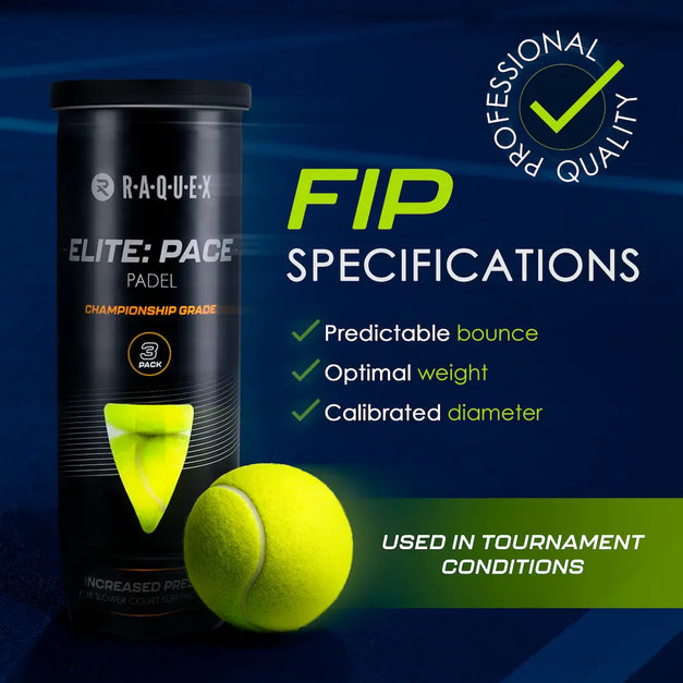 Erleben Sie die höchste Padelball-Leistung mit Raquex‘ Tube mit 3 Premium-Padelbällen für das Schlägersportspiel Padel. Erhältlich in zwei Druckoptionen; Elite-Padelbälle für Standardgeschwindigkeit, am besten geeignet für langsamere Plätze oder kältere Bedingungen, und Elite: Pace für schnelleres, wettbewerbsfähigeres Gameplay.