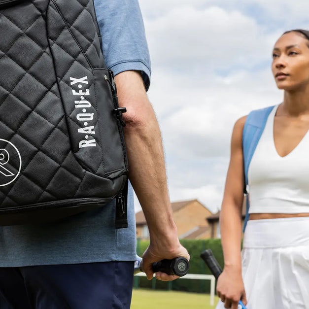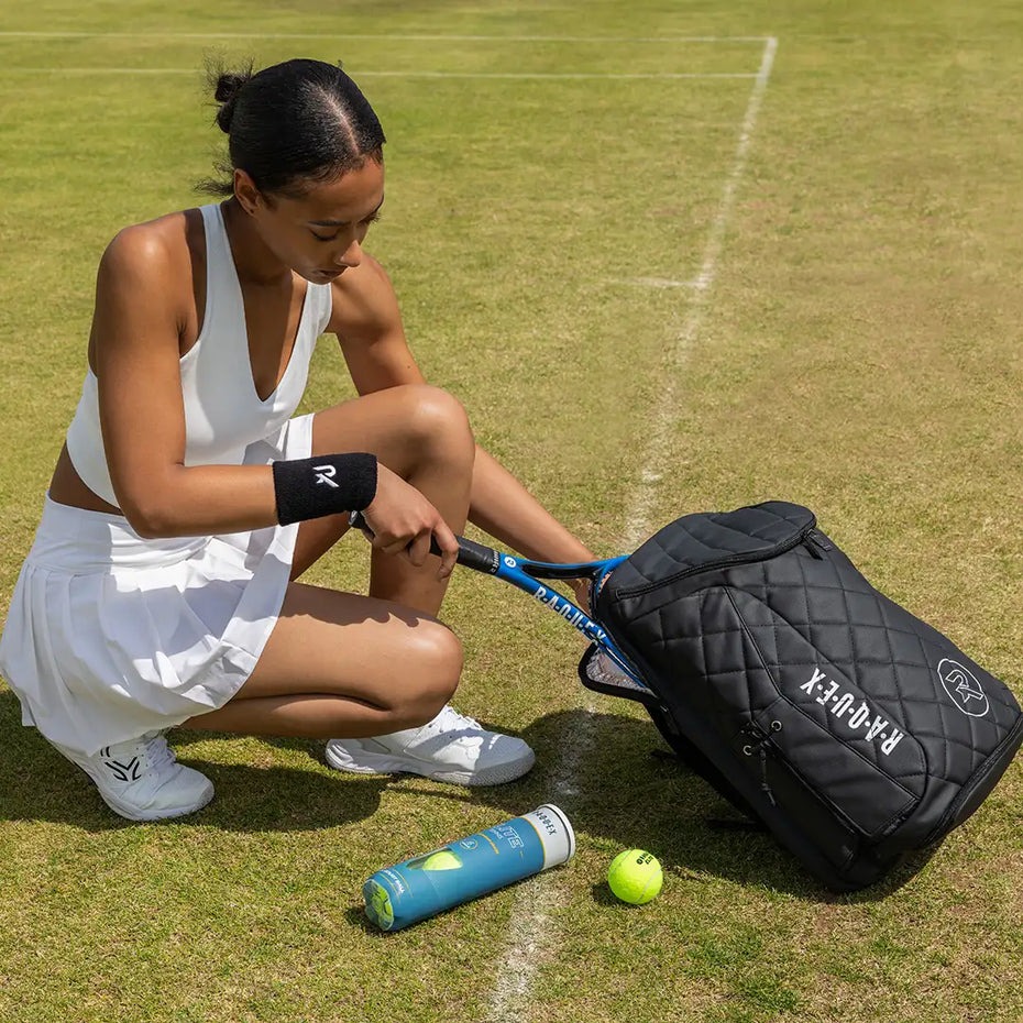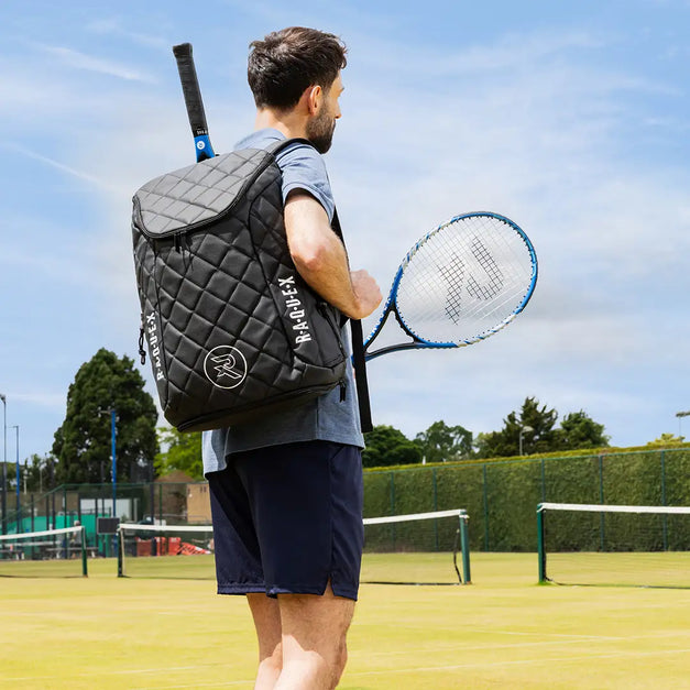 Command the Court. Own the Look. More than just a backpack, the Raquex Elite backpack sports bag with racket compartment is a statement of style and smart design. Crafted in sleek, quilted faux leather that moves seamlessly from court to café, our racquet bag is designed for racquet sports enthusiasts with a taste for premium; a black beauty that blends high-performance functionality with everyday versatility.