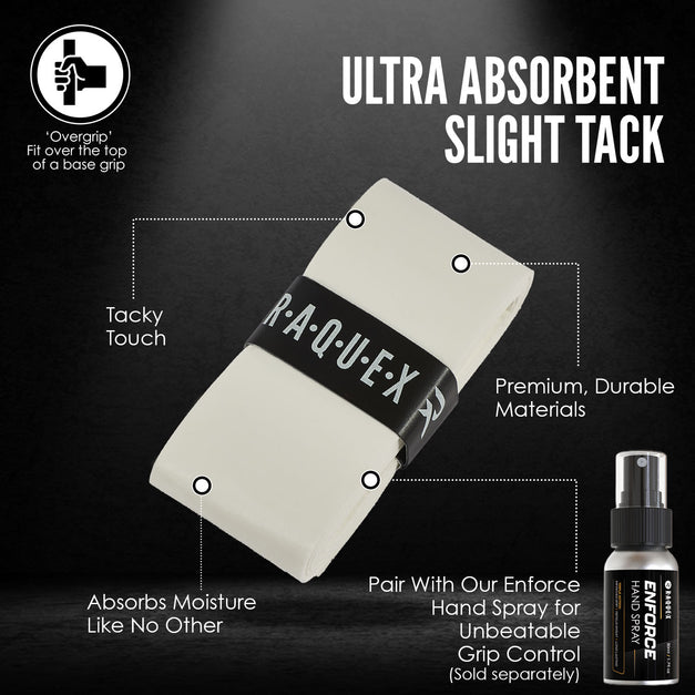 Take control of every swing with the Raquex Endure Pro overgrip, crafted for padel and pickleball players who value consistent comfort and an absorbent feel. Made from durable PU material, these grips have a slightly tacky surface, giving you secure control without being overly sticky.